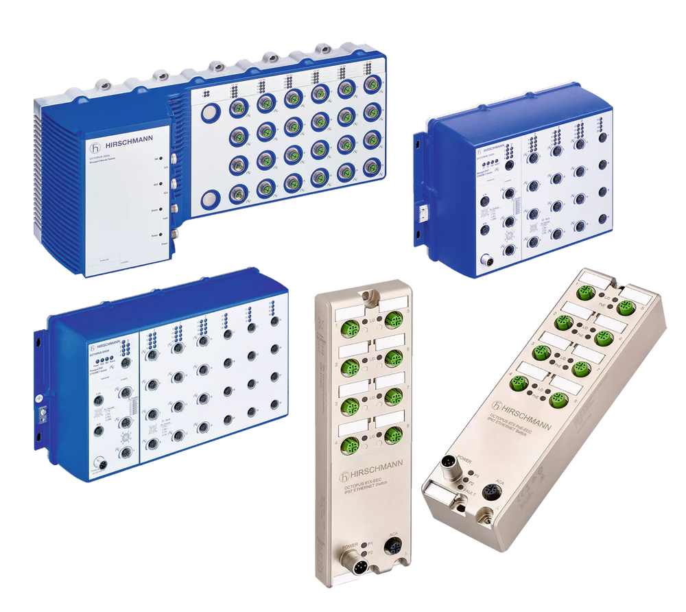 The OCTOPUS Family of managed switches provide IP65/67 waterproof and dust-tight protection as well as ratings for on-board rail, fire protection in trains, railway line use, ship use, and road vehicle use. For high bandwidth applications, the Full Gigabit Managed versions comes equipped with full Gigabit Ethernet capability on all ports. Some versions support Power over Ethernet (PoE). NOTE: Belden will discontinue OCTOPUS Classic variants of Hirschmann Classic Software Switches. The LAST ORDER DATE is 31 December 2023. Newer models of these switches are available running the state-of-the-art Hirschmann Operating System HiOS. These switches are drop-in replacements for their Classic Software based equivalents.