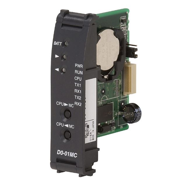 The D0-01MC memory cartridge slides easily into the option card slot in any DL05 PLC to back up PLC programs and data for extended periods of time. Part Number: D0-01MC DATA/SPECS |