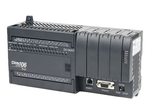 The DL05 Micro PLC Model D0-06AR has one RS–232C communication port and one multi-function RS232C/RS422/RS485 port. The D0-06AR has 20 AC inputs and 16 relay contact outputs. Part Number: D0-06AR DATA/SPECS