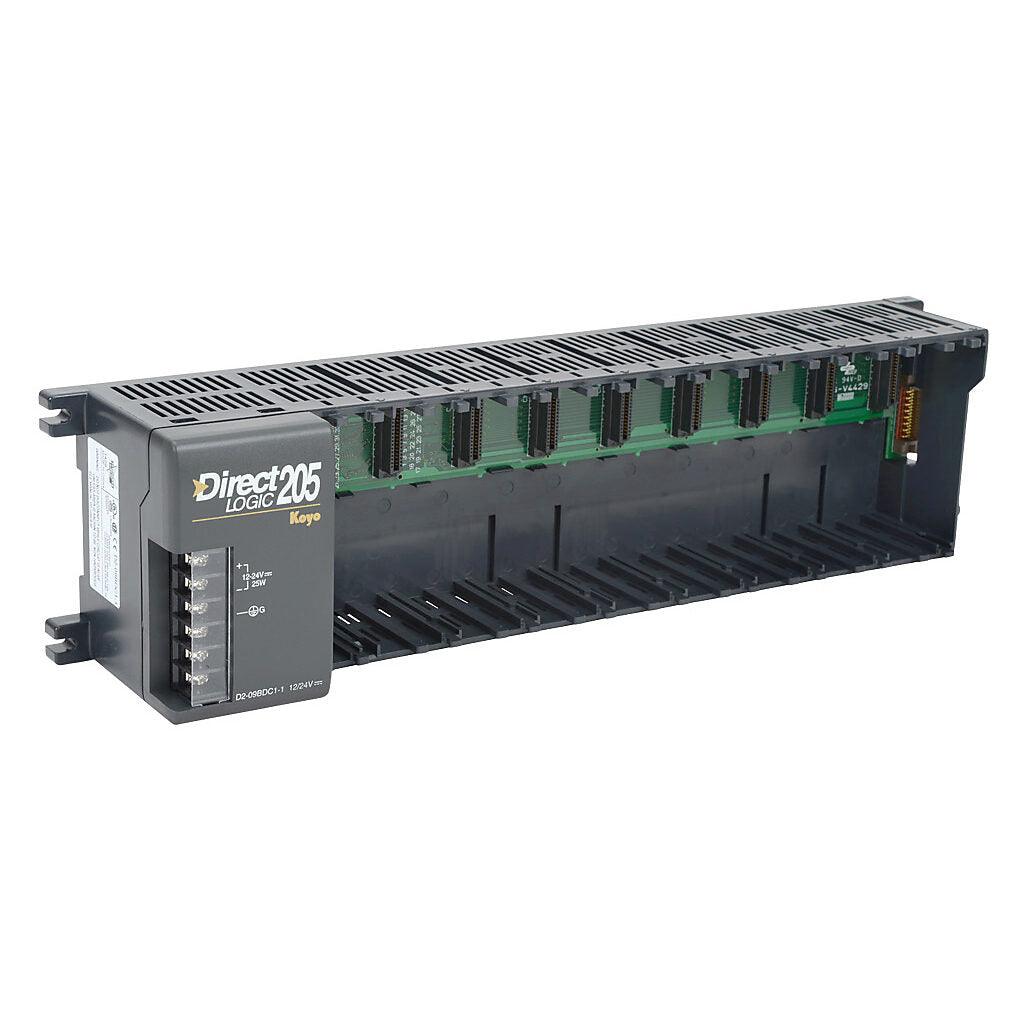 | DL205 I/O base 9-slot DIN rail or panel mount external 12-24 VDC required. |